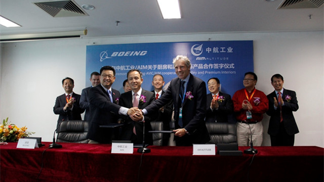 2016年11月1日,珠海 ——波音公司、中航工业、AIM Altitude(简称AIM)在第十一届中国国际航空航天博览会(珠海航展)上举行签字仪式,宣布将密切合作