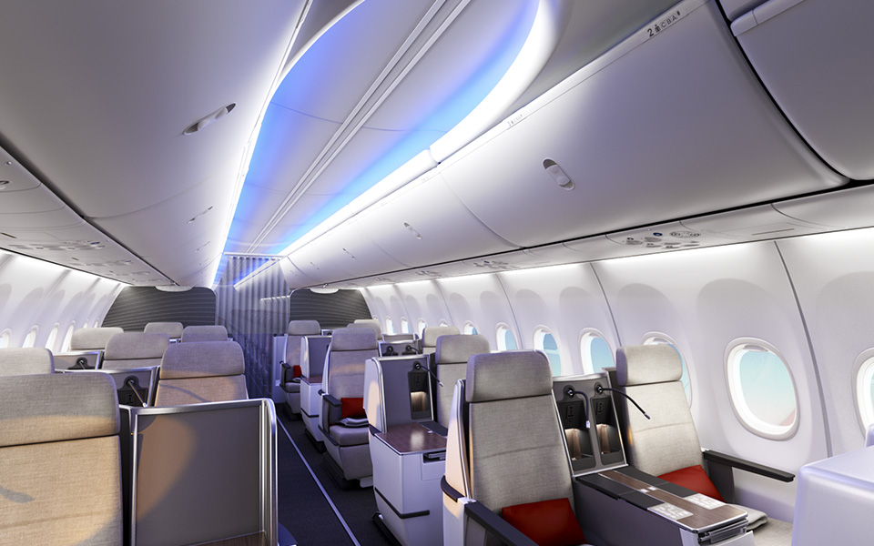 737 MAX 家族的设计将为客户提供单通道飞机市场具有最佳灵活性、可靠性及效率的产品。每架飞机都将配备波音天空内饰。这种新型内饰采用了现代造型的侧壁和舷窗框、可增强开阔感的LED照明设备,以及更大的转轴式头顶行李舱。