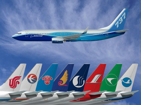 中国国际航空公司、中国东方航空公司、中国南方航空公司、山东航空公司、上海航空公司、深圳航空公司和厦门航空公司已于今年早些时候订购了65架新一代波音737飞机,这些订单于今年8月份公布在波音订单和交付网站上。