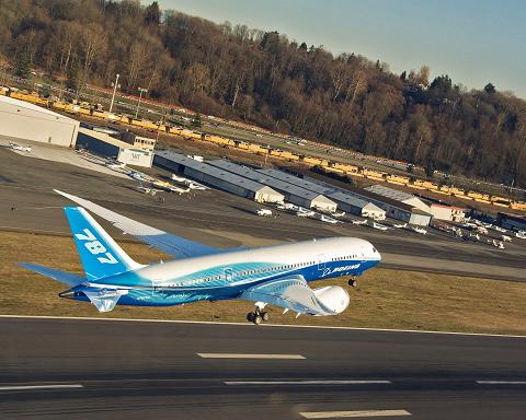 2010年1月19日——日前,波音圆满完成787梦想飞机的初始适航测试。未来几周内,项目组将继续扩大飞行包线,使787爬升至4万英尺以上的高度(12192米),速度将达到0.85马赫。随后的试飞将让飞机在超出预计运营条件的情况下运行。