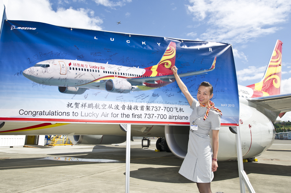 2013年5月13日,西雅图——波音向云南祥鹏航空有限责任公司(简称“祥鹏航空”)交付了一架737-700高高原飞机。这架737-700是祥鹏航空第一架从波音引进的737-700高高原飞机。祥鹏航空还将陆续引进5架该型客机,以壮大公司的机队规模。