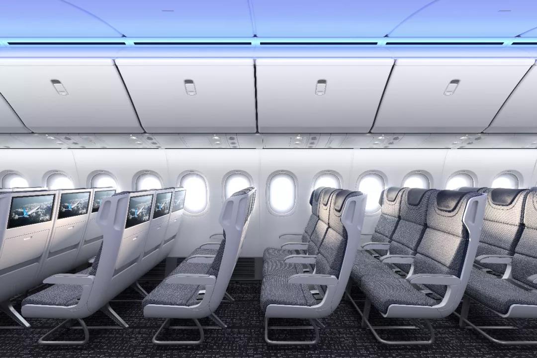 舷窗的尺寸更大,而且位置更高,从而可以为每一位乘客带来更多光照和更好的视野。头顶行李舱足以让每名乘客在座椅上方存储一件行李,而且易于关闭。行李舱在关闭后可以让出更多空间,进而增强客舱的宽敞、开阔感。