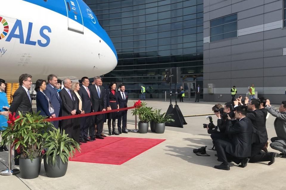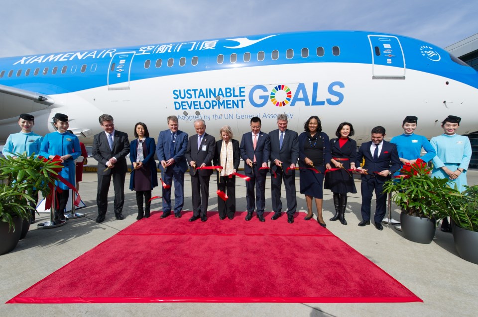 联合国副秘书长艾莉森•斯梅尔(Alison Smale)、中国驻美国大使崔天凯、厦航总经理赵东、波音中国总裁庄博润(John Bruns)等嘉宾在现场见证了这架特殊飞机的交付。厦航将把这架飞机打造成为传播联合国可持续发展目标的“空中形象大使”,以实际行动支持可持续发展目标在全球范围内的传播。